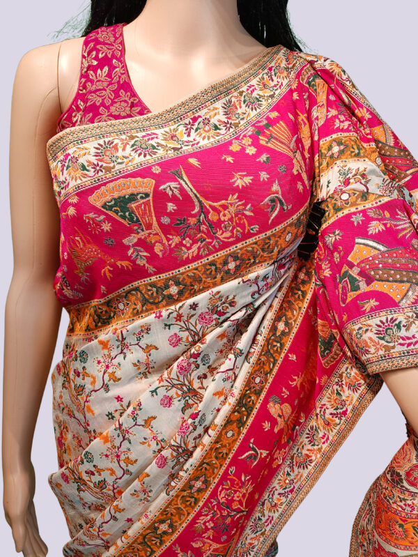 Pashmina Silk Embroidery Saree with Blouse Piece – Graceful & Comfortable Ethnic Look