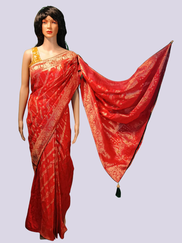 Be the first to review “Red Polly Silk Traditional Gujarati Embroidery Work Saree With Blouse Piece – Festive & Wedding Wear”